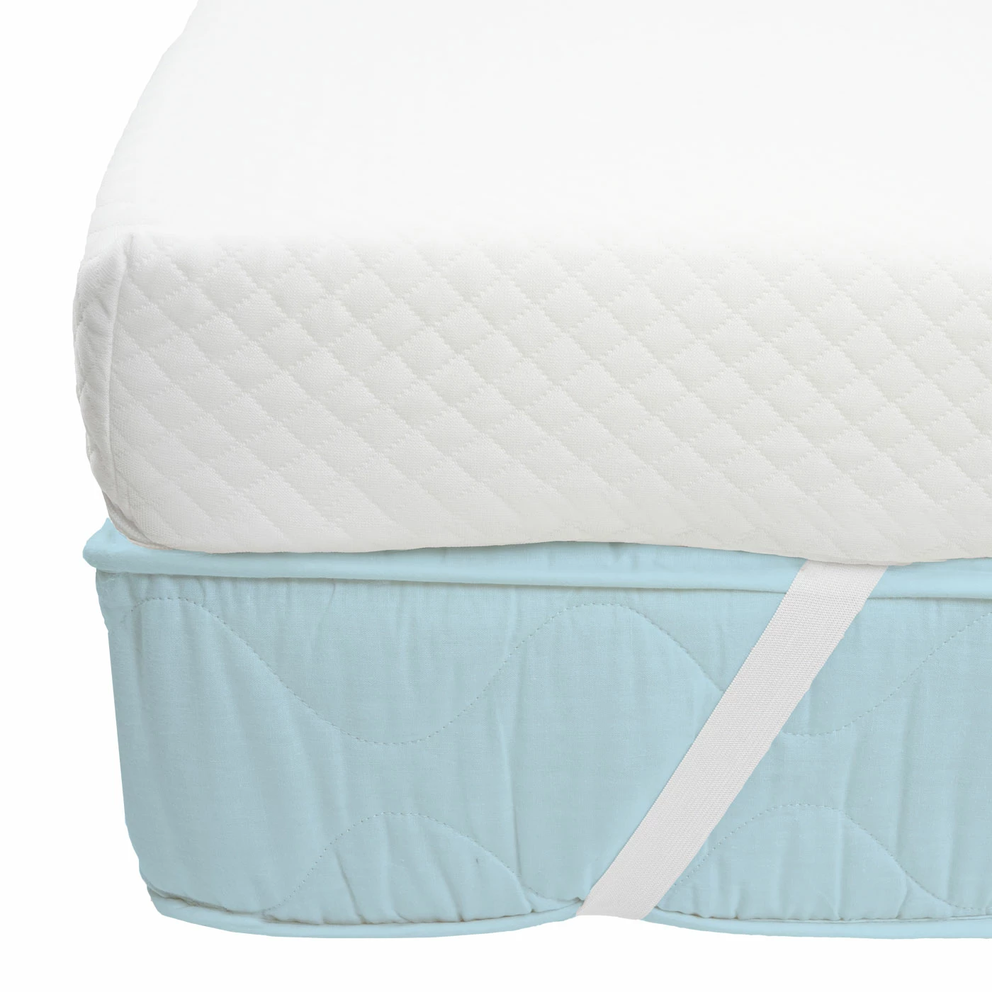 Matratzentopper werden immer mehr zum Trend – nicht ohne Grund, der Nutzen spricht ganz für sich: Sie ermöglichen nicht nur einen angenehmeren Schlaf, diese Topper bringen durch die zusätzliche Schicht automatisch eine Schonfunktion der Matratze mit sich und verlängern so deren Lebensdauer. Durch die Noppen auf der Unterseite des Matratzentoppers entsteht eine Antirutschfunktion, die in Kombination mit den vier Spanngummis für eine gute Fixierung sorgt.