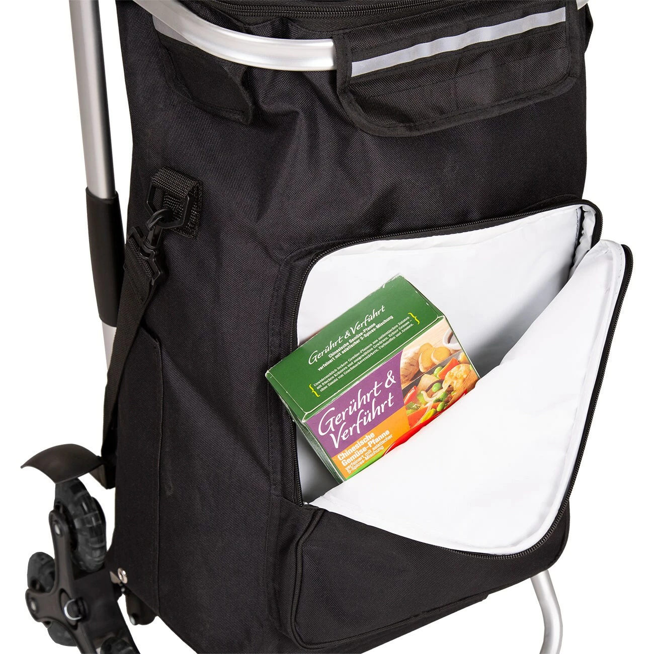 - GROSSER STAURAUM: Der robuste Einkaufstrolley mit abnehmbarer Tasche bietet in seiner großen Tasche mit 43 Litern viel Stauraum. Ein extra Vorderfach mit Kühlfunktion nimmt zusätz