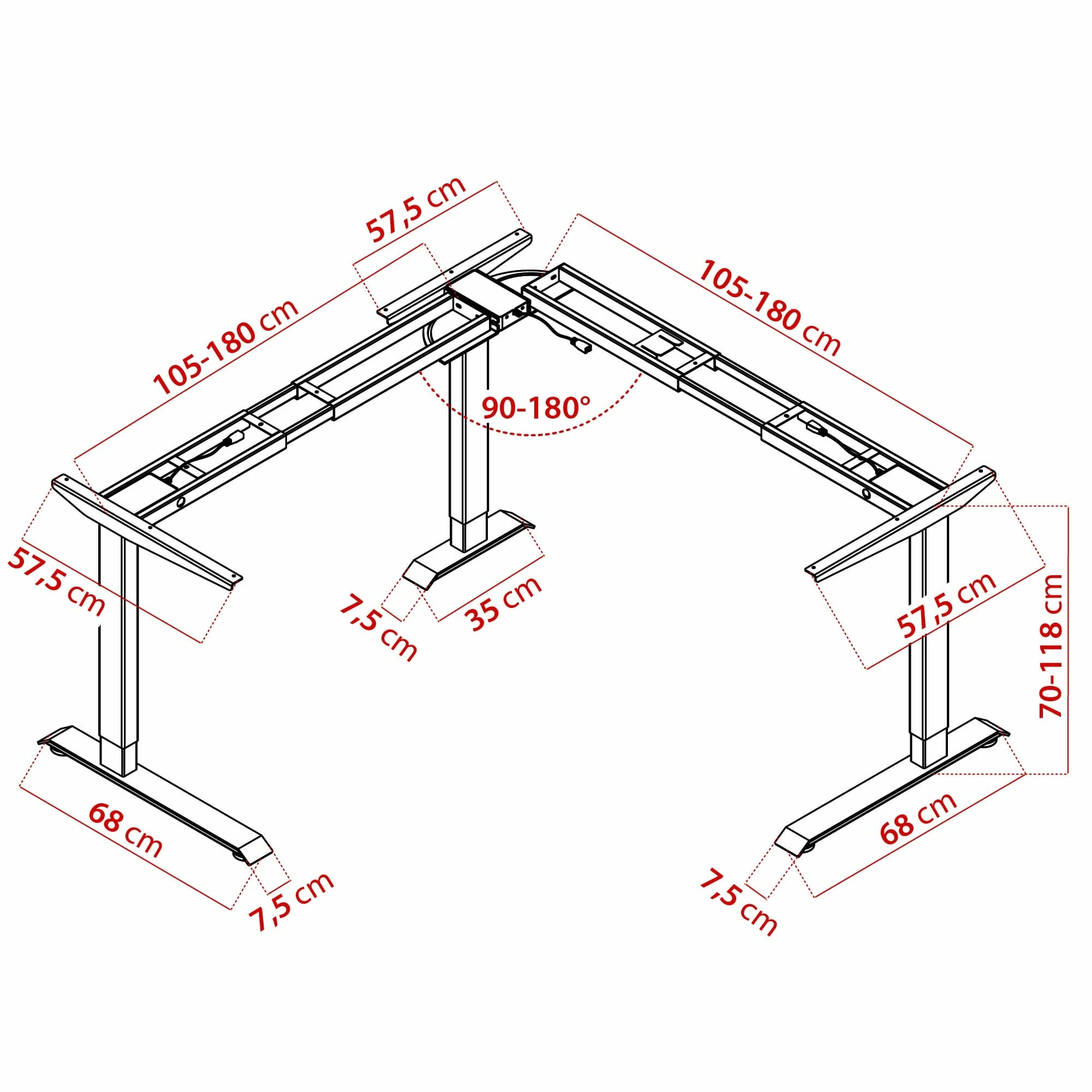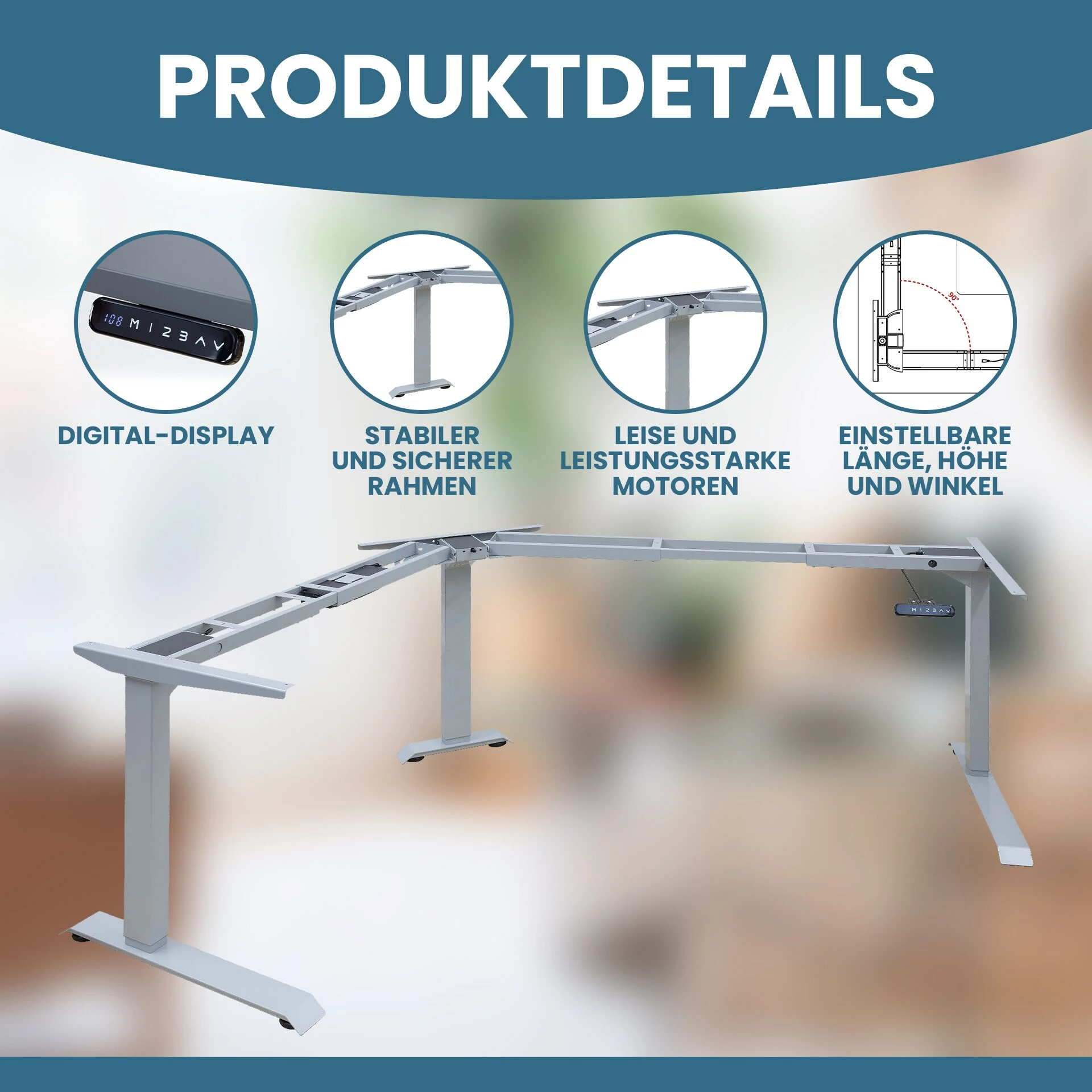 - NÜTZLICHE FEATURES: Das Winkeltisch-Gestell besitzt ein Digitaldisplay und eine Speicherfunktion von bis zu 3 präferierten Höhen. Außerdem sind ein Anti-Kollisionssensor und Kindersicherung verbaut.