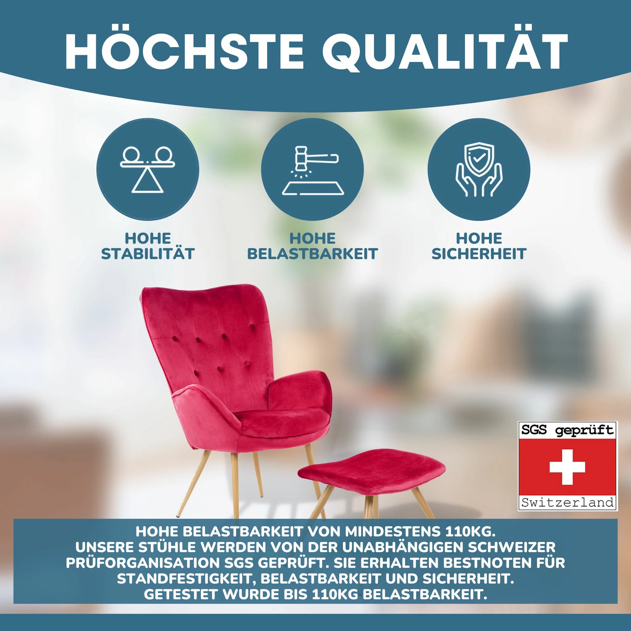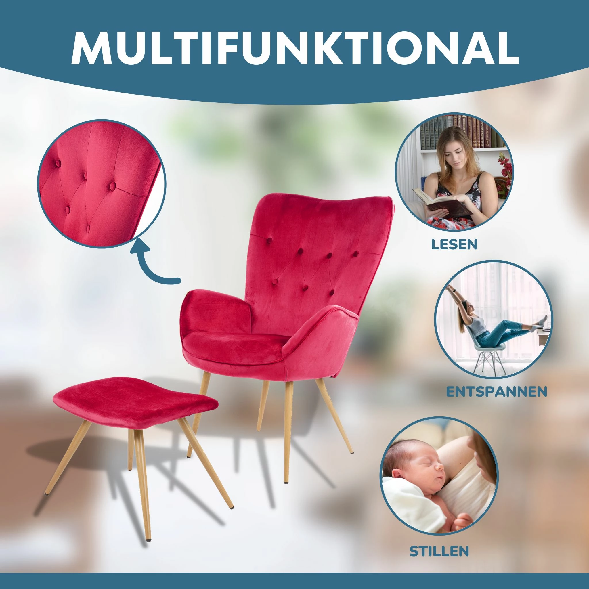 Albatros Ohrensessel mit Hocker YORK, Samt Bezug, bequem gepolstert, Fernsehsessel, Polstersessel