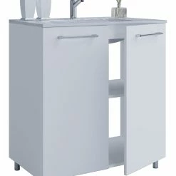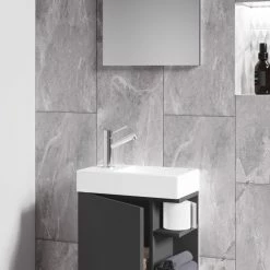 VCM 2-tlg Badmöbel Set Gäste WC Gästebad Waschplatz Waschtisch Klein Schmal Grifflos Silora M