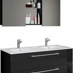 VCM 2-tlg. Waschplatz Waschtisch Badmöbel Set Waschbecken Schublade Spiegelschrank Lisalo L