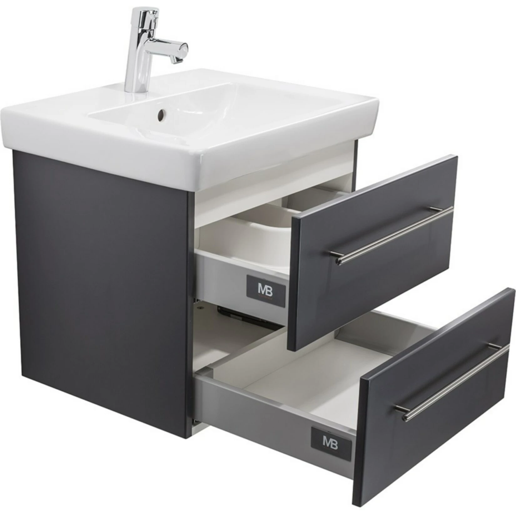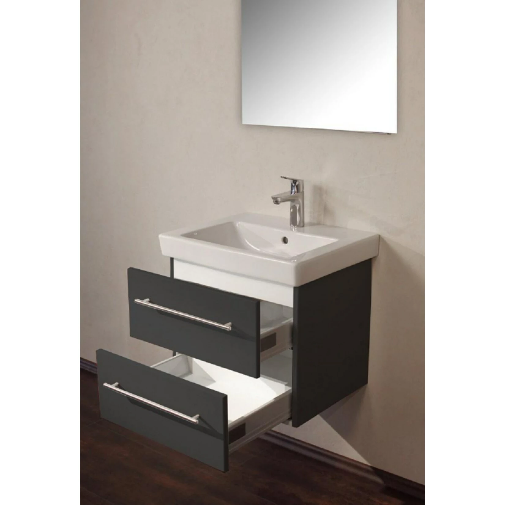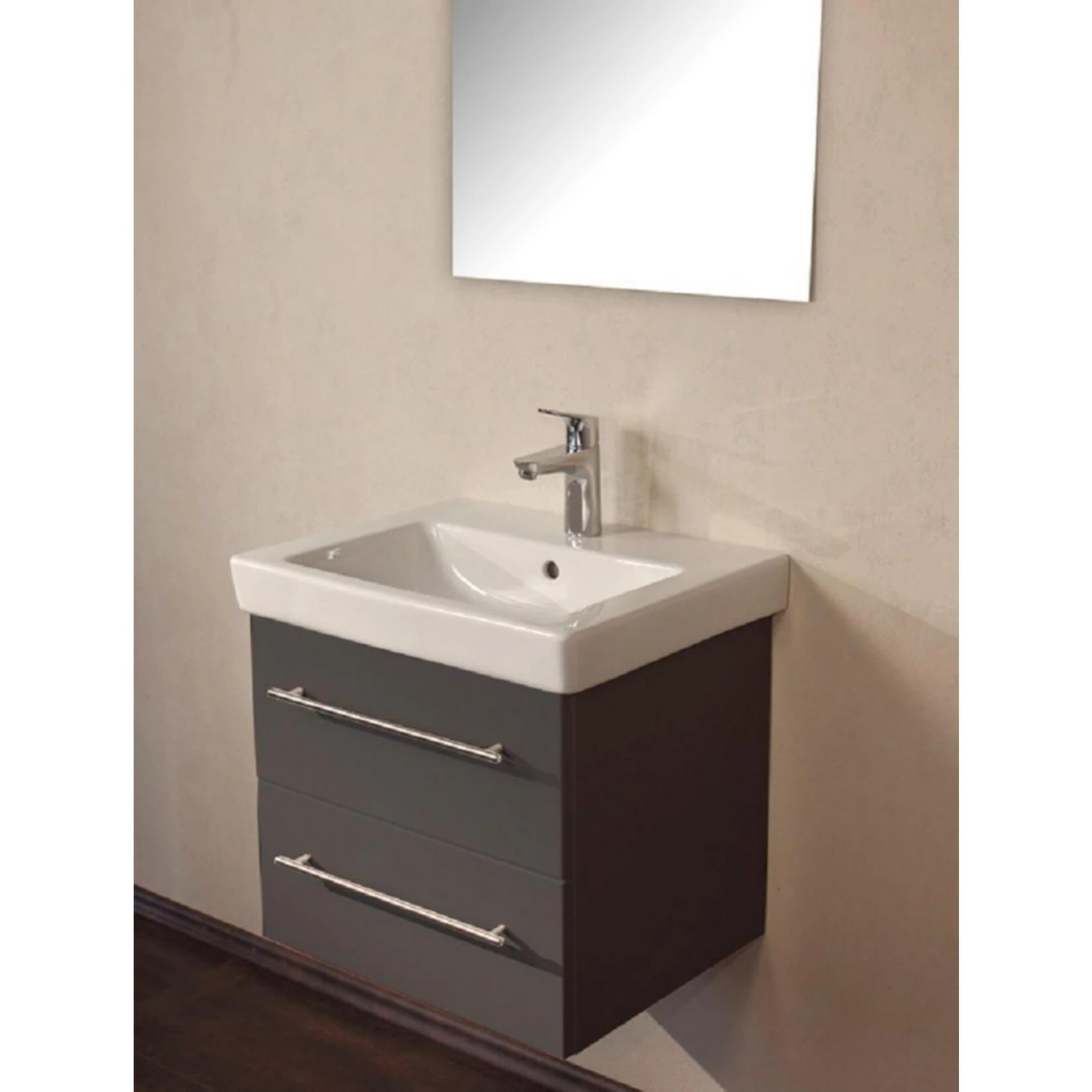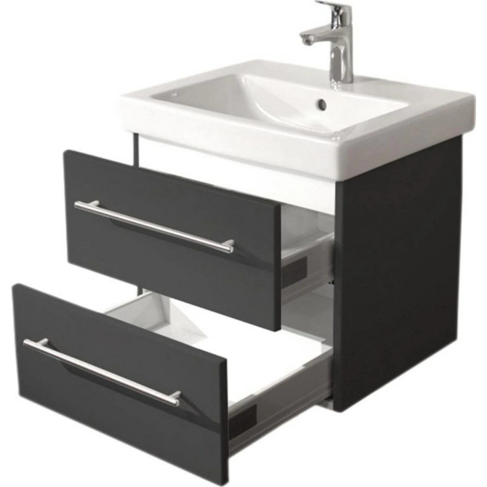 Badmöbel inkl. Villeroy & Boch Waschbecken Subway 2.0 55cm und passendem Unterschrank in anthrazit Seidenglanz
