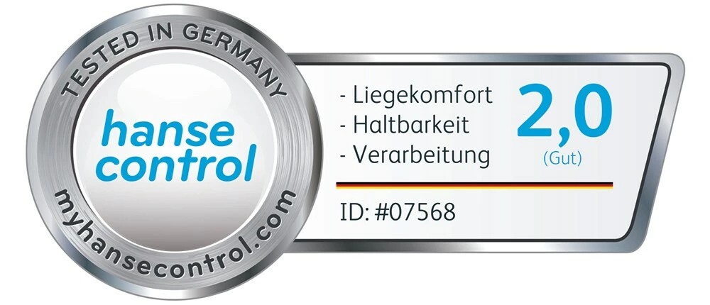 Positives Feedback zur Matratze gibt es nicht nur von der renommierten Testzeitschrift “Haus & Garten”, auch vom bekannten Prüfinstitut “Hansecontrol” hat unsere Matratze die Note GUT erhalten. Wir sind von der Ortho Dynamic natürlich genauso überzeugt wie sämtliche Tester. Deshalb hast du bei uns die Chance deine Matratze 100 Tage lang zu testen und kannst sie dann immer noch zurückschicken.