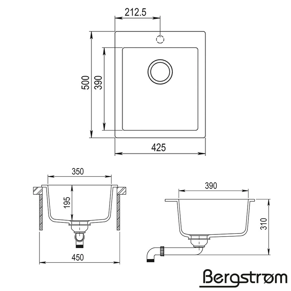 Das zeitgemäße Spülbecken der Marke Bergström besticht durch ein formschönes, elegantes Design und hochwertige Verarbeitung.