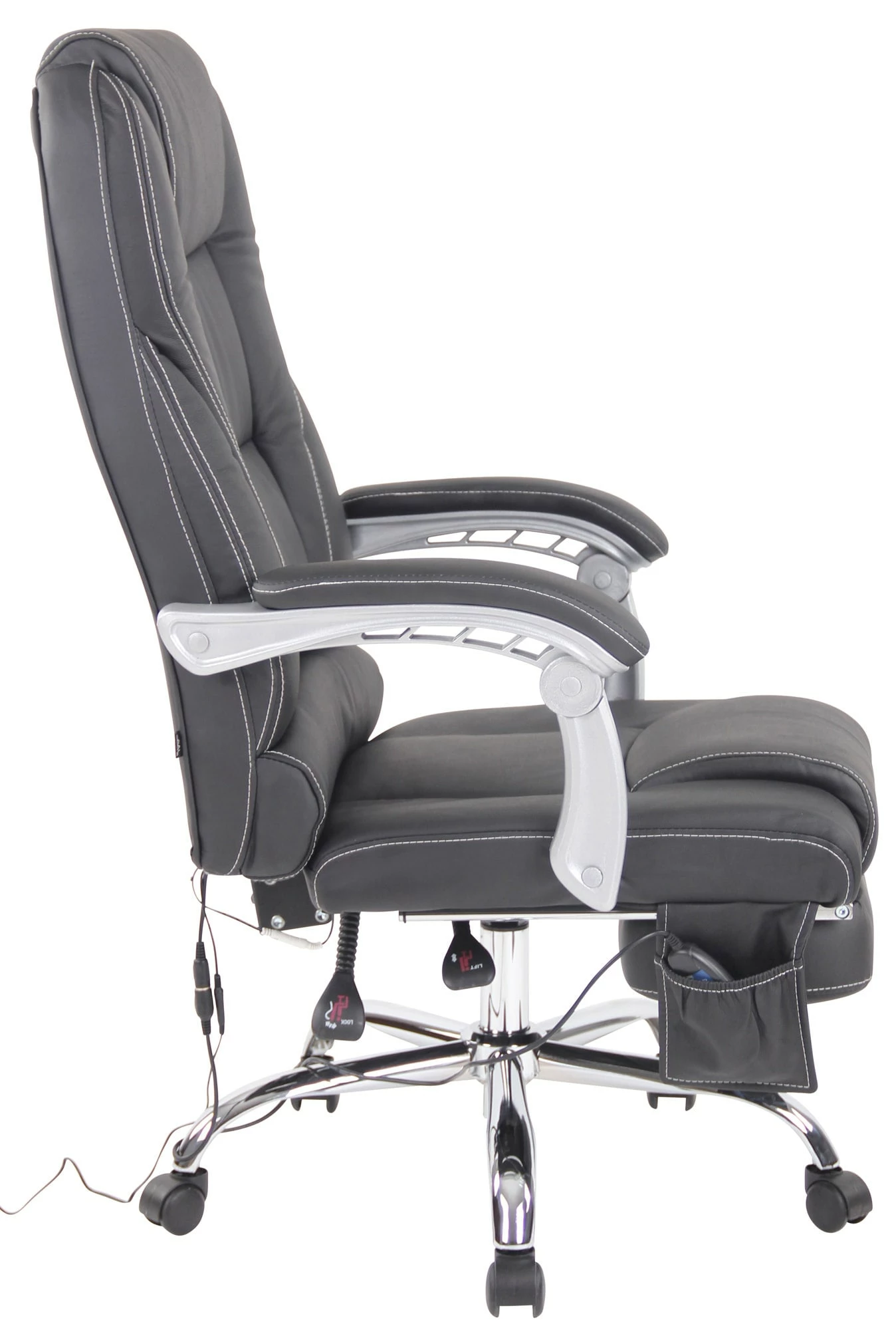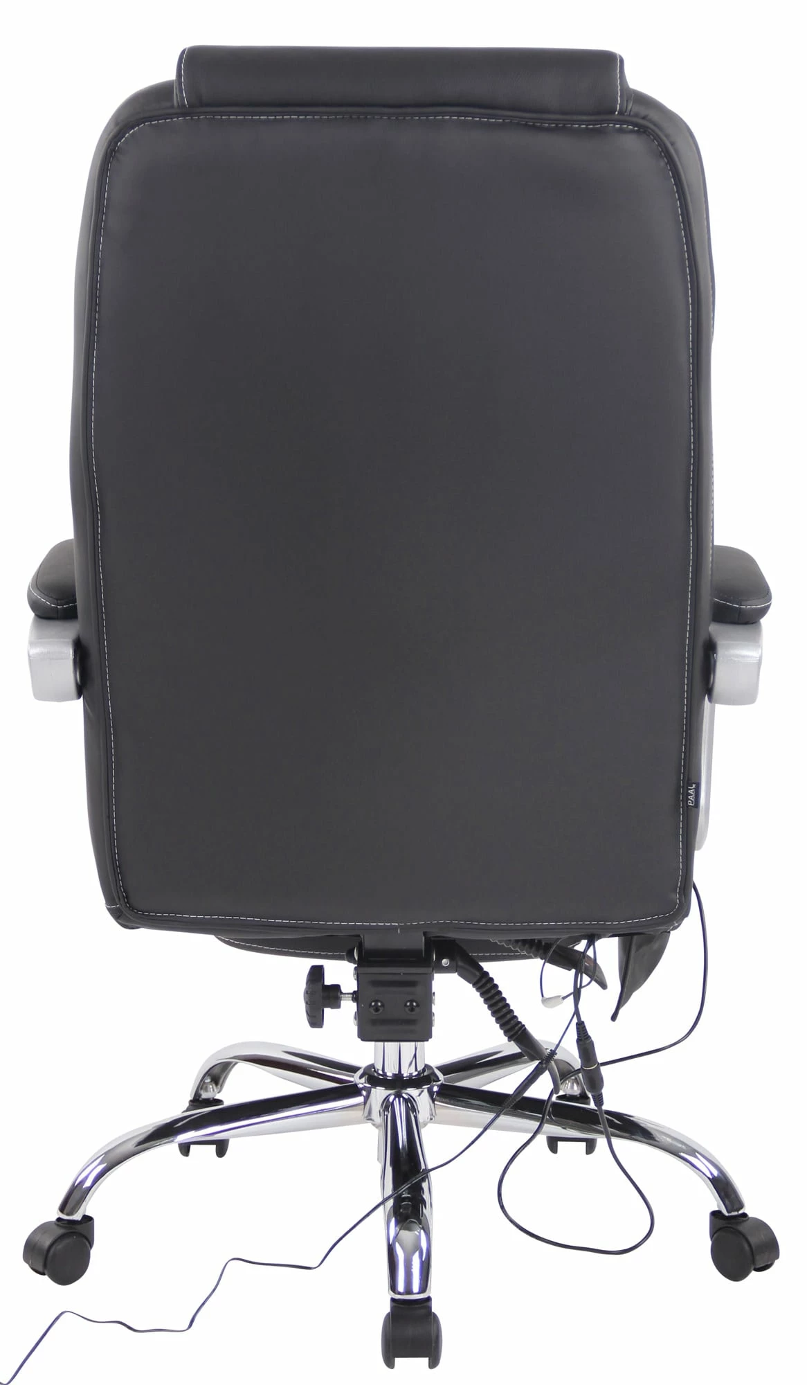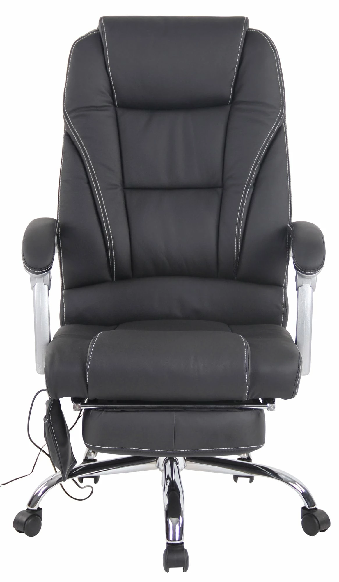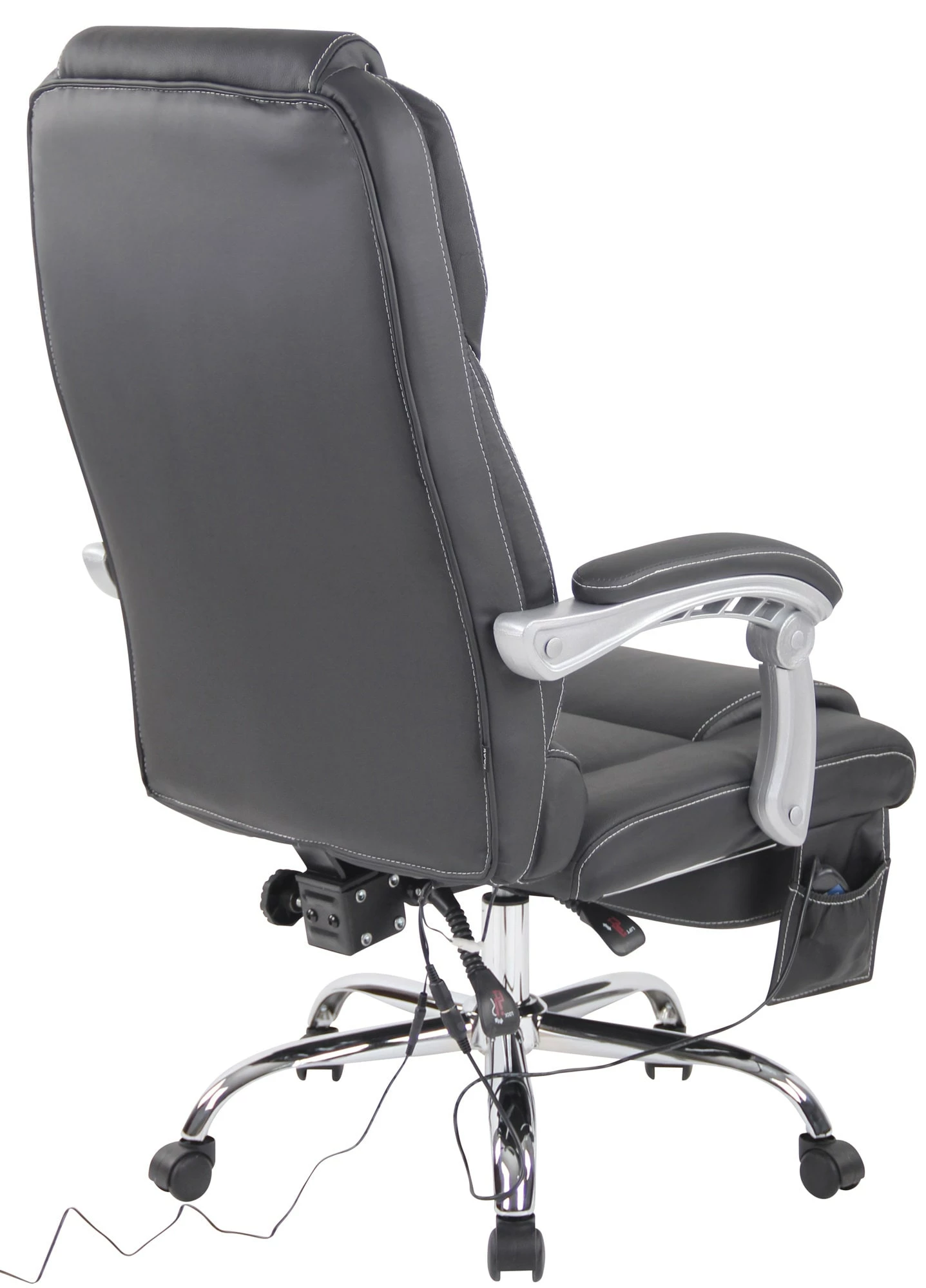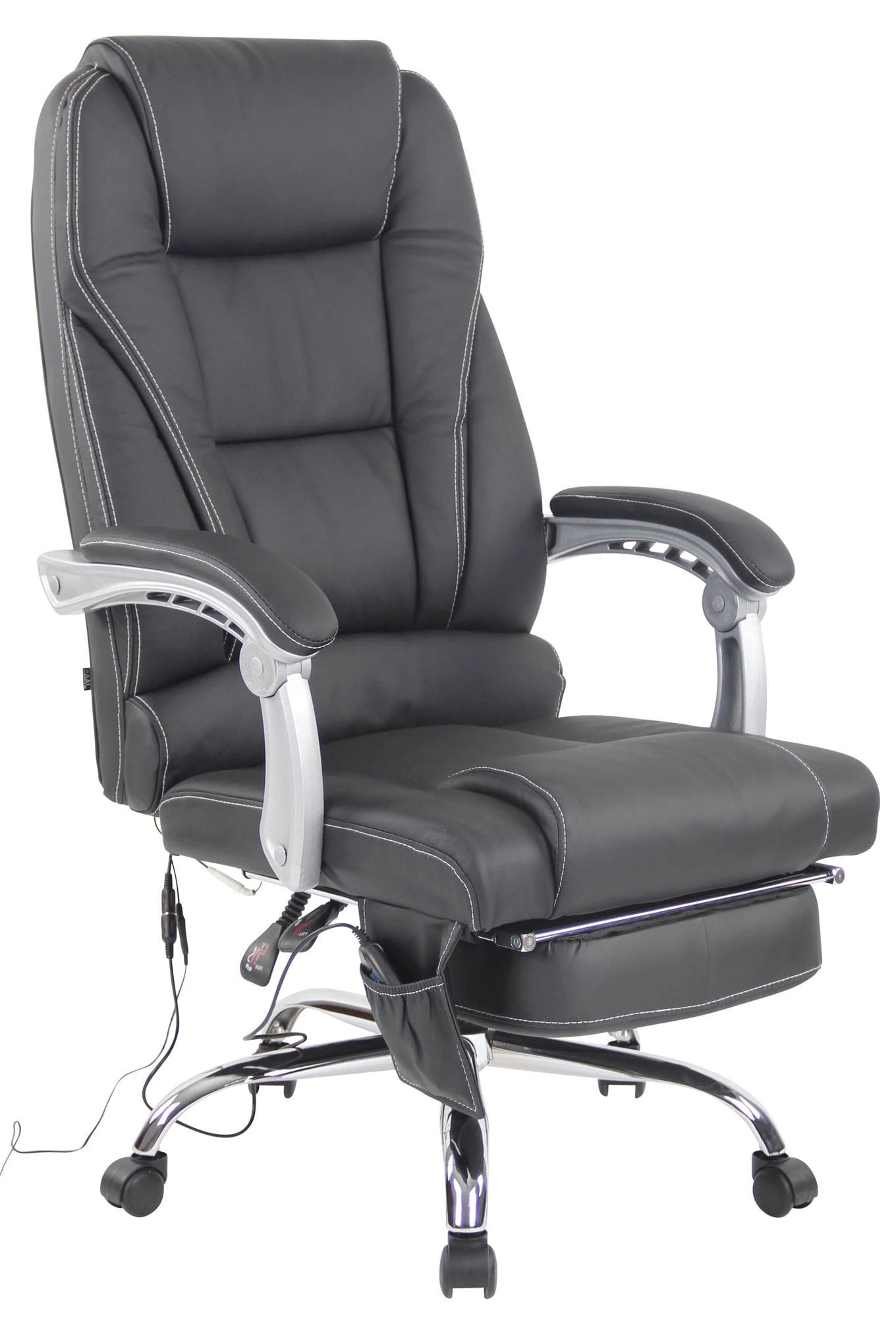 Auf außerordentlichen Sitzkomfort zahlen darüber hinaus auch die Fußablage und die neigbare Rückenlehne des ergonomischen Stuhls ein – zurücklehnen und genießen! Der Schreibtischstuhl ist stufenlos höhenverstellbar und um 360 Grad drehbar. Dabei steht er sicher auf dem Metallgestell und fünf Leichtlaufrollen, die den Stuhl auch auf Hart- und Teppichböden mobil halten. Der Massagestuhl ist bis 136 kg belastbar.