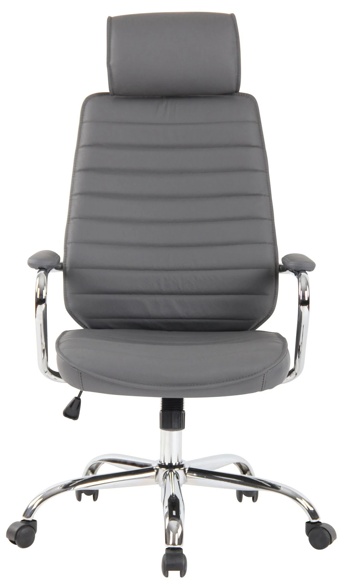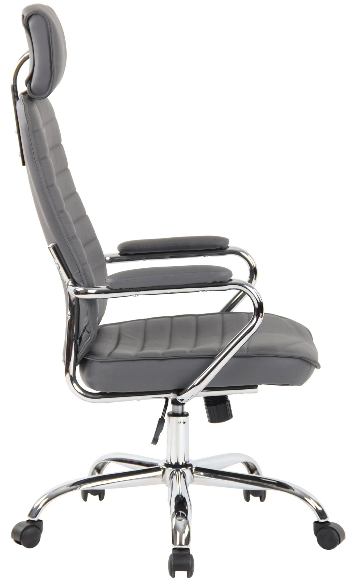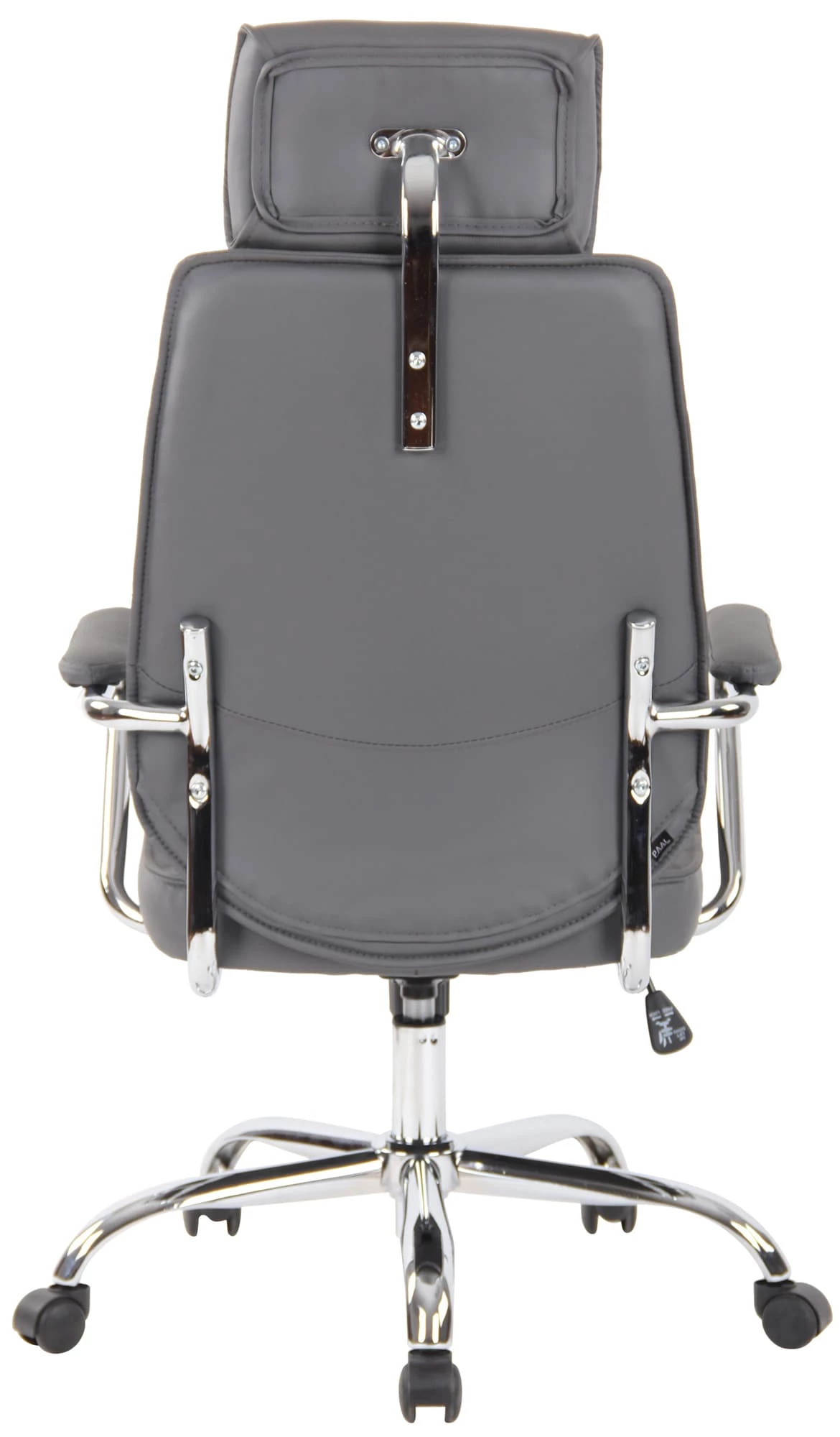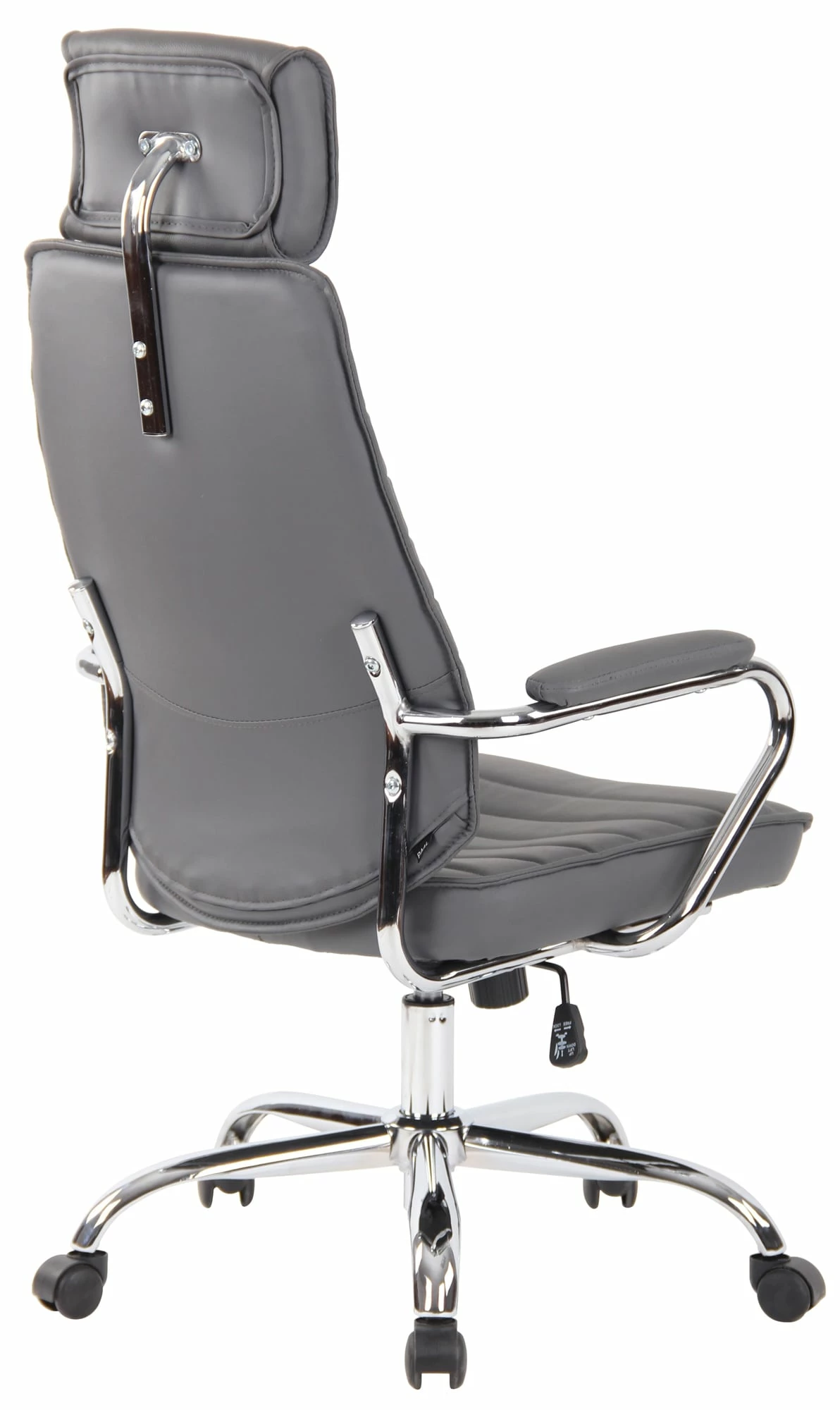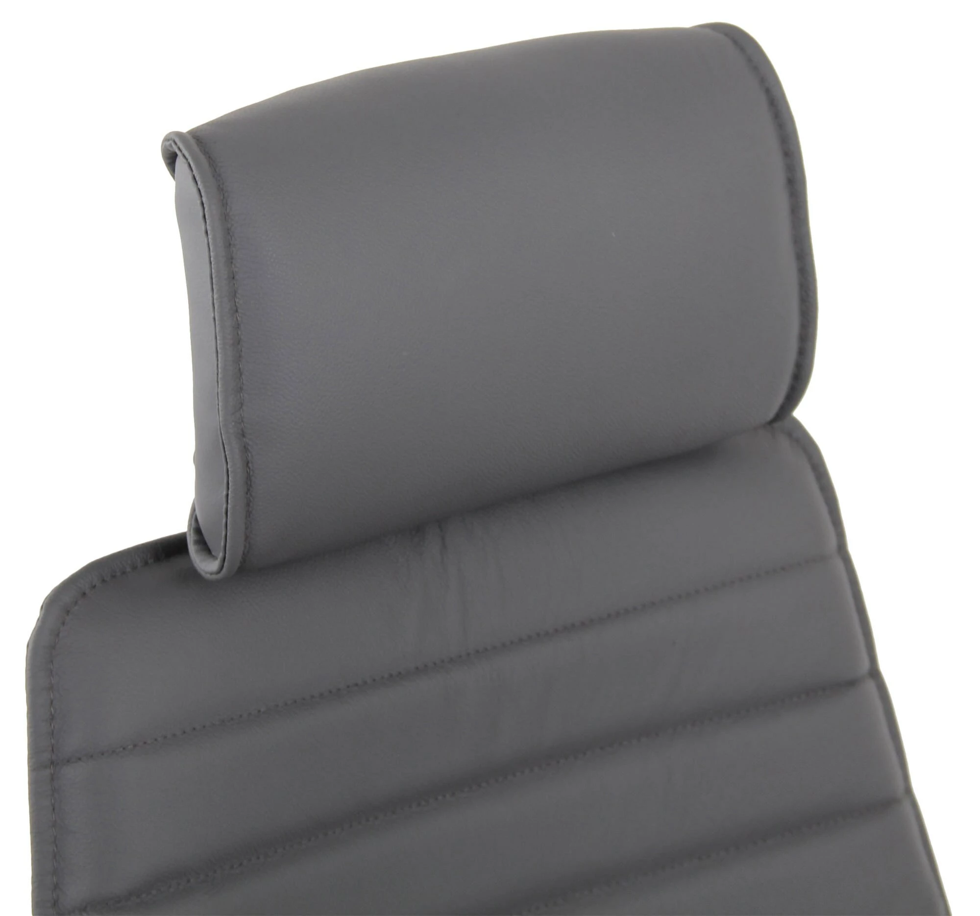 Der Chefsessel Rako ist ein Bürostuhl mit einer sehr hochwertigen Polsterung und moderner Optik. Dabei sieht der Echtlederbezug nicht nur sehr schön aus, er ist auch besonders robust und pflegeleicht. Ein stabiles Metallgestell in Chromoptik sorgt zusätzlich für einen sicheren Stand. Die Sitzhöhe ist stufenlos verstellbar und garantiert ein ergonomisches Sitzen auch über Stunden hinweg. Der eingebaute Wippmechanismus sorgt zudem für mehr Bewegungsfreiheit. Der Drehstuhl Rako steht fest auf fünf Leichtlaufrollen. Egal ob Hart- oder Teppichböden – Sie werden immer leicht und locker über den Boden rollen können.