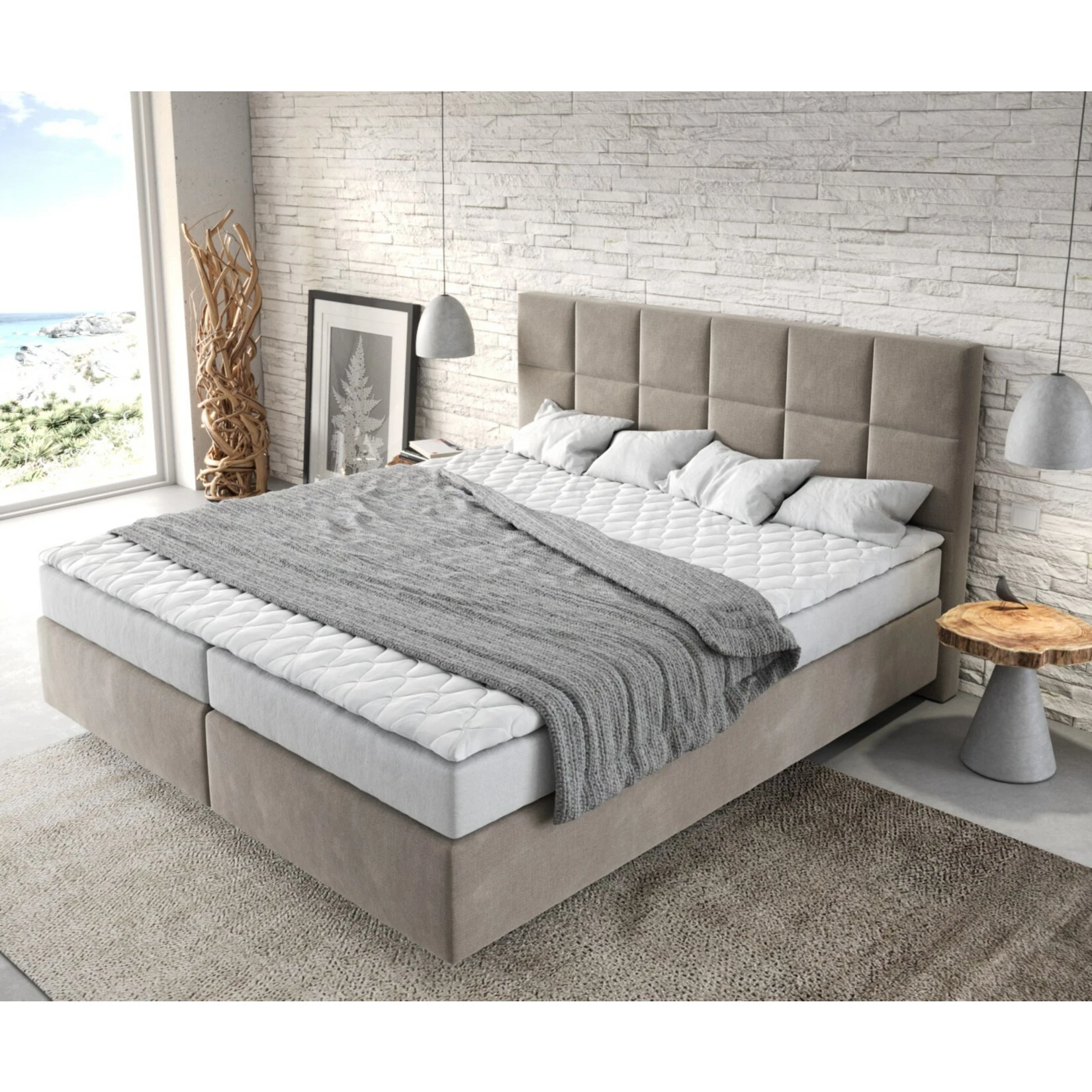 Das sorgfältig verarbeitete Boxspringbett Dream-Fine bietet hohen Komfort für erholsame Nächte. Seinen gemütlichen Charakter verdankt das qualitativ hochwertige Möbelstück seiner Ausstattung mit einer Matratze und einem Topper. Die weiche Bonellfederung sorgt für ein angenehmes Liegegefühl. Das Kopfteil des Bettes erscheint dank der schlichten, quadratischen Absteppung besonders modern und dabei nicht zu aufdringlich, was es ermöglicht, das Bett vielseitig zu kombinieren. Mit seiner zeitlosen Ausstrahlung kann das Modell Dream vielseitig in moderne und betont elegante Räumlichkeiten integriert werden.