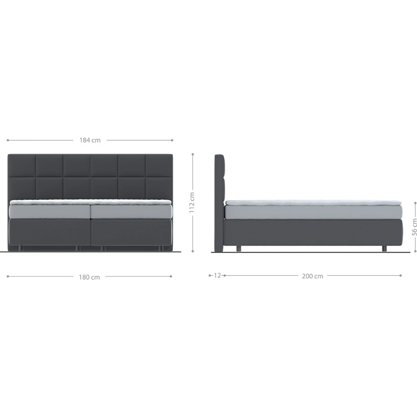 Produktmaterial: Boxspringunterbau: Bonellfederung, Schaum wattiert, Kopfteil: Wattiert , Matratze: PU-Schaum, Bonellfederkern, Topper: PU-Schaum, Füße: Kunststoff, Bezugstoff: Mikrofaserstoff (92% Polyester / 8% Nylon)
