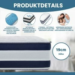 Arensberger DELUXX 9-Zonen Taschenfederkern 3D-Memory Matratze 90 X 200 Cm, Höhe 30cm, RG 45