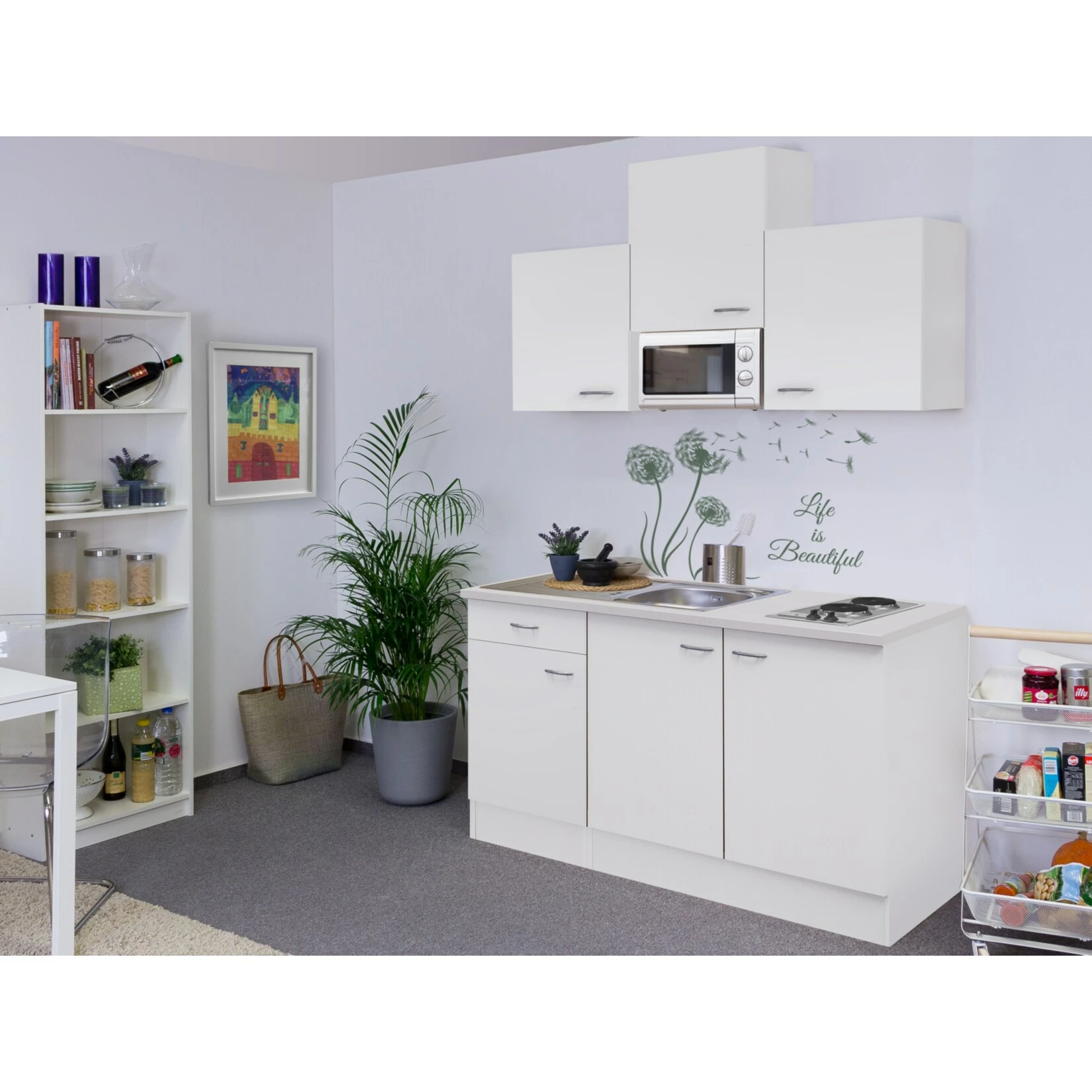 - Front: Weiß, Kunststoffoberfläche, alle Kanten horizontal und vertikal mit Dünnkante