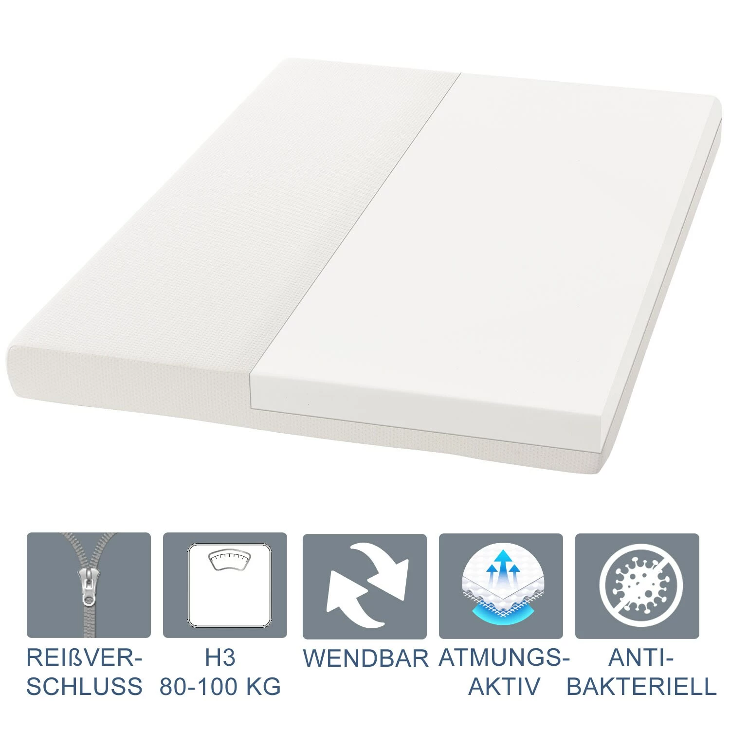 Die Materialien der ergonomischen Kaltschaummatratze sind vergleichsweise leicht und so komponiert, dass Sie die Möglichkeit haben, die Matratze unkompliziert zu wenden. Dies beugt Liegekuhlen vor und sorgt dafür, dass die Matratze immer gut durchlüftet ist. Der symmetrische Aufbau verspricht einen identischen Liegekomfort auf beiden Seiten.