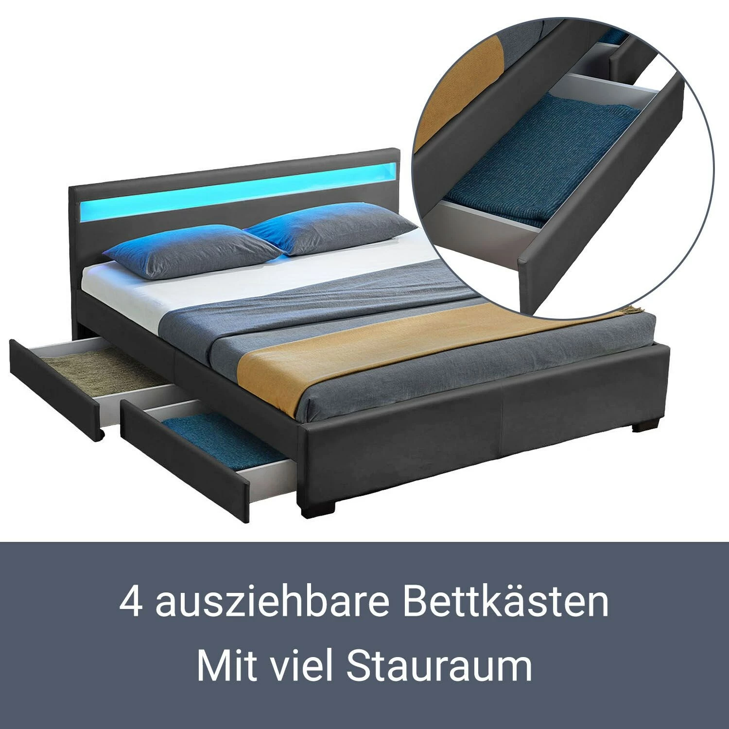 - Stauraum durch 4 ausziehbare Bettkästen