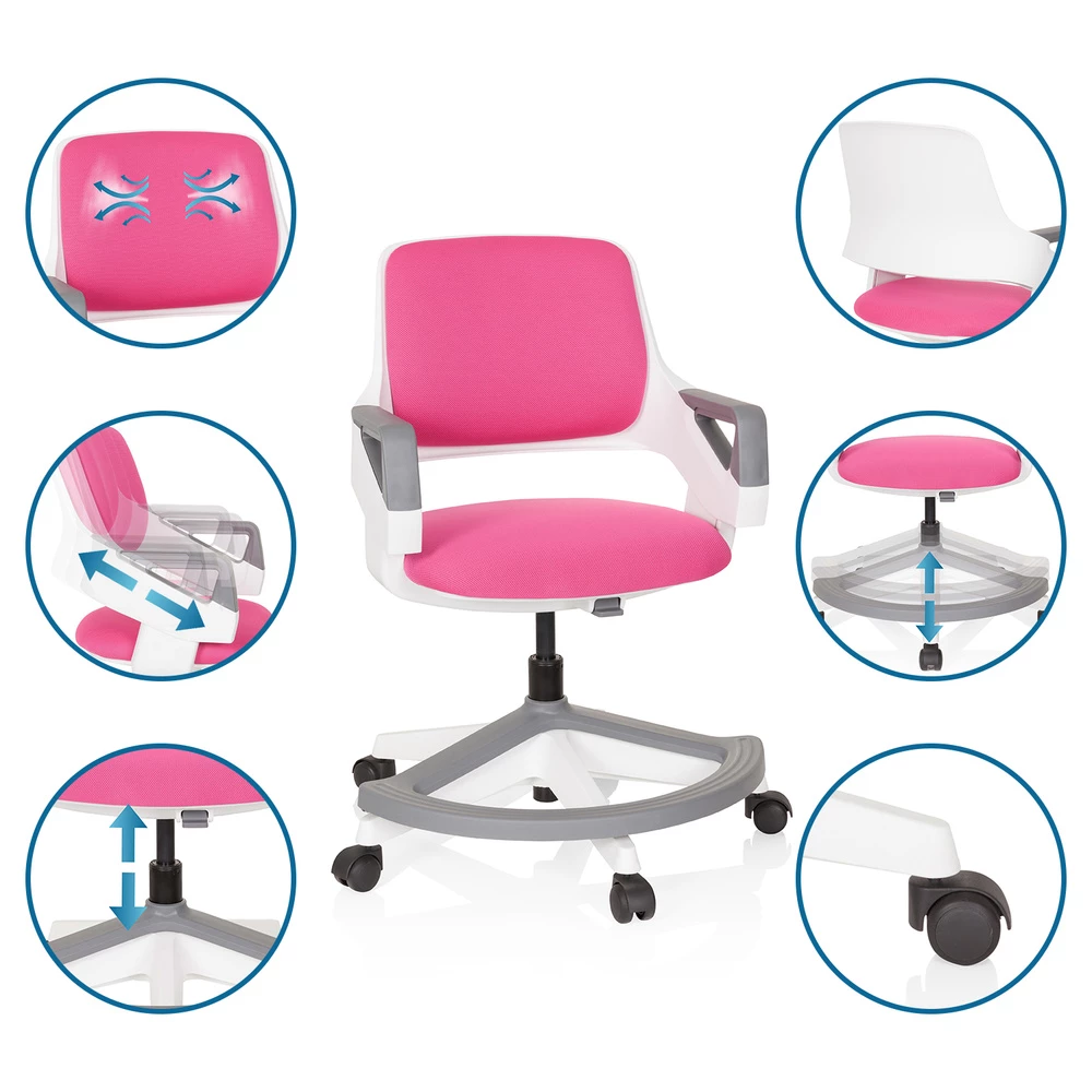 Der mitwachsende Drehstuhl KID FLEX lässt sich im Handumdrehen an die jeweilige Wachstumsphase Ihres Kindes anpassen. Mit einem simplen Griff unterhalb der im robusten Rahmen integrierten Armlehnen kann die Rückenlehne gleichzeitig nach oben und nach hinten versetzt werden. Die angenehme Polsterung und der robuste Stoffbezug sorgen für hohen Komfort und Langlebigkeit. Auch die Sitzhöhe ist individuell verstellbar.