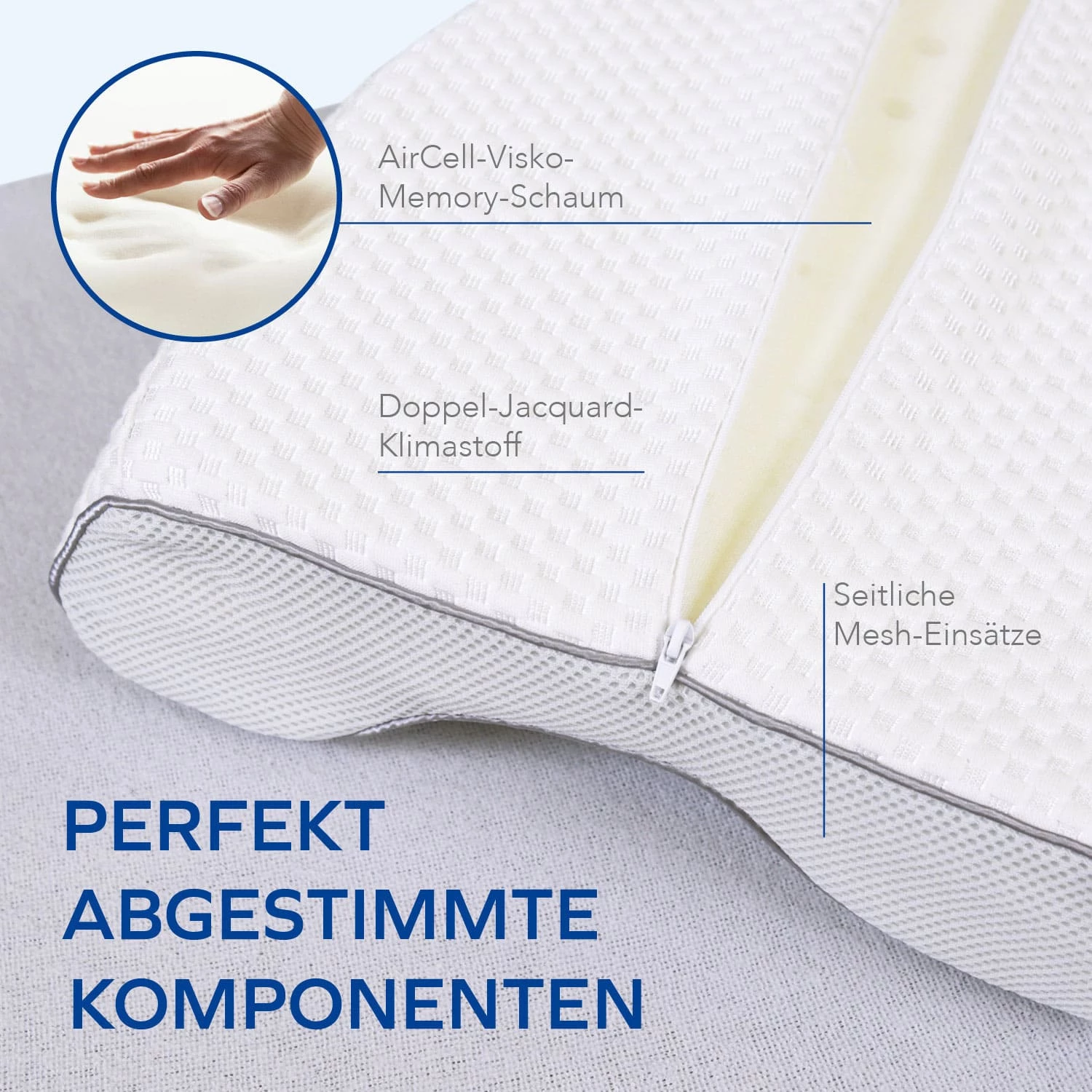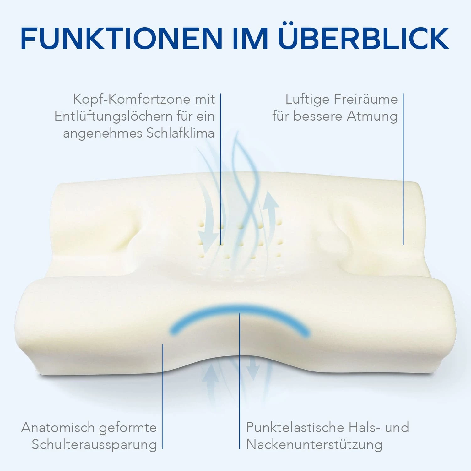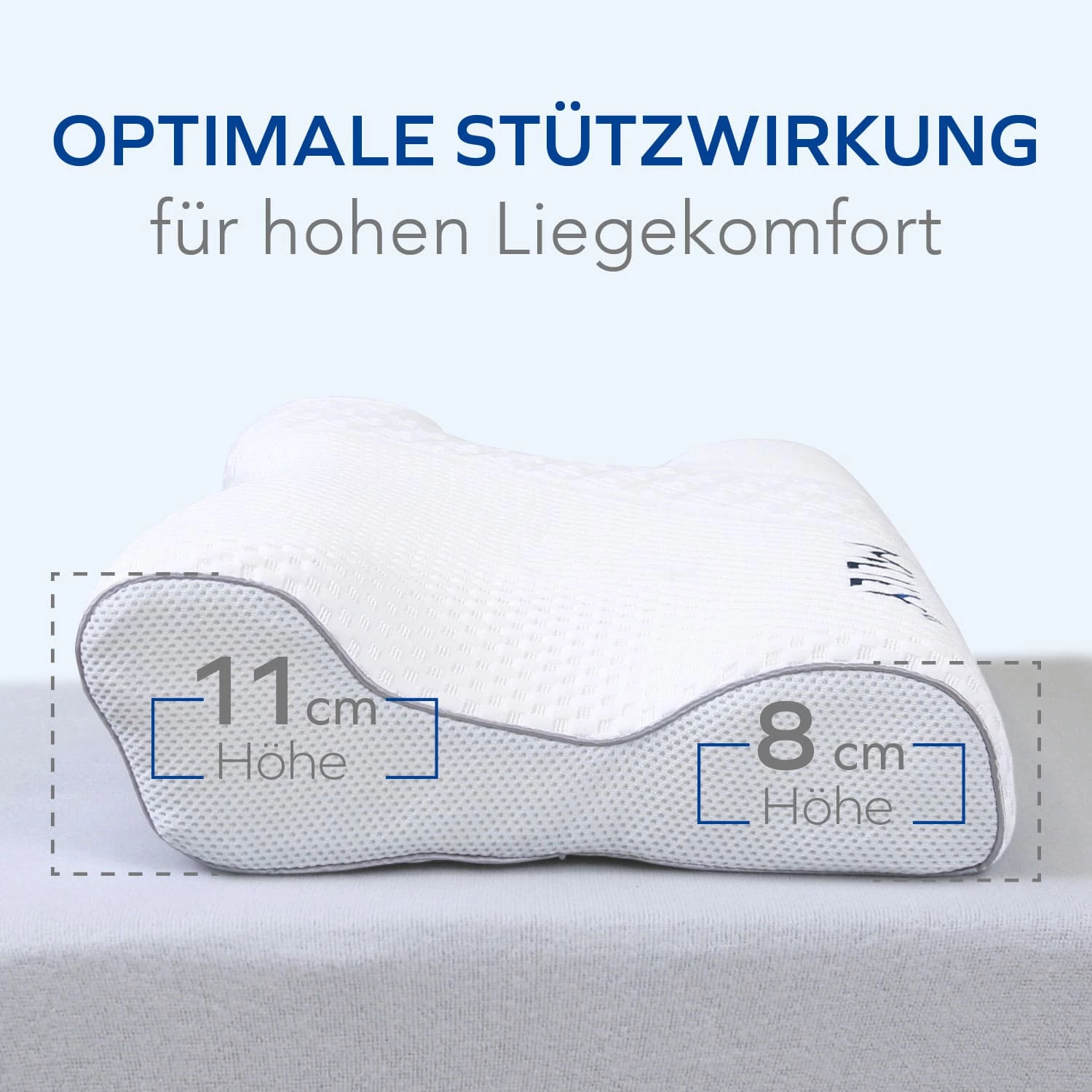 - ERGONOMISCHE STÜTZE: Damit Seitenschläfer keine Nackenverspannungen bekommen, erhält die Halswirbelsäule mit diesem Kopfkissen eine Stütze, die eine ergonomische Haltung fördert.