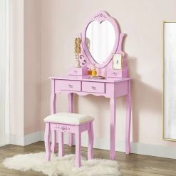 Juskys Schminktisch Julia – Frisiertisch Mit Spiegel, Hocker & 4 Schubladen – Rosa – Mädchen Kinder