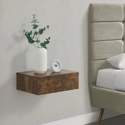 Juskys Wandregal Nachttisch Hängend 2er Set Holz 46x30x15 Cm – 1 Schublade Nachtkommode Natur