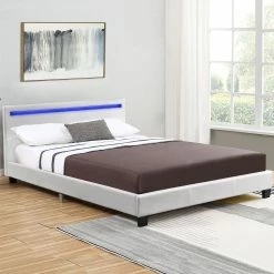Juskys Polsterbett Verona Weiß | 120×200 Cm | Bettgestell LED-Beleuchtung, Lattenrost & Matratze