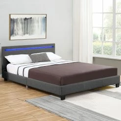 Juskys Polsterbett Verona Grau | 120×200 Cm | Bettgestell LED-Beleuchtung, Lattenrost & Matratze