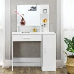 Juskys Schminktisch Julia – Frisiertisch Mit Spiegel, Hocker & 4 Schubladen – Weiß – Mädchen Kinder