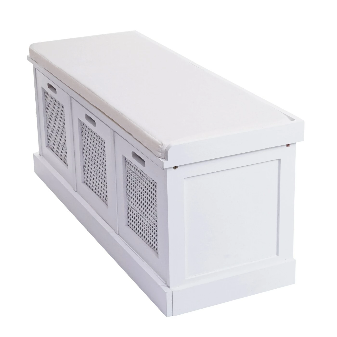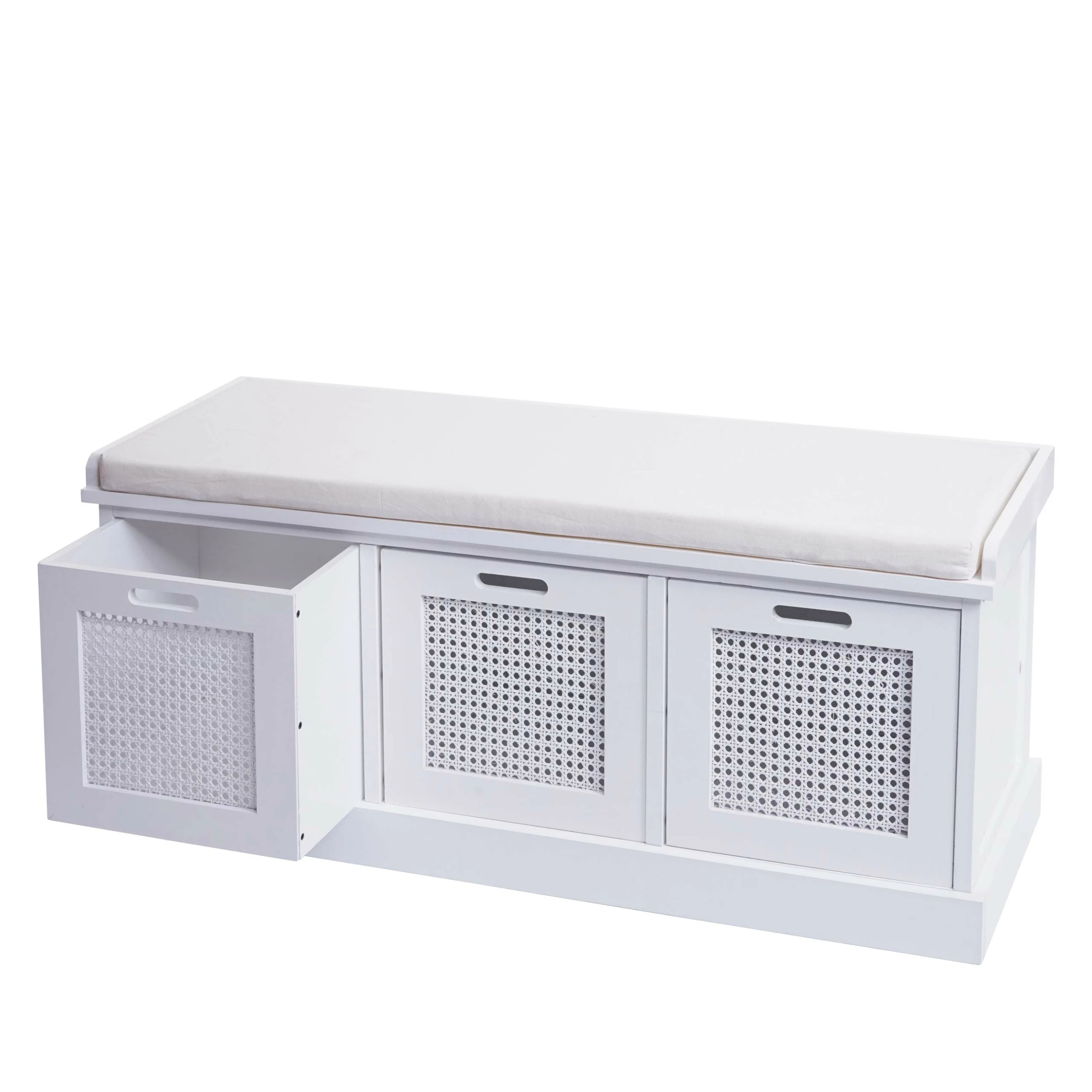 – Diese Sitz-Kommode überzeugt nicht nur durch ihr schlichtes Design. Dank den drei praktischen Aufbewahrungsboxen verfügt sie über reichlich Unterbringungsmöglichkeiten für Ihre alltäglichen Gebrauchsgegenstände wie Taschen, Regenschirme oder Ähnliches.