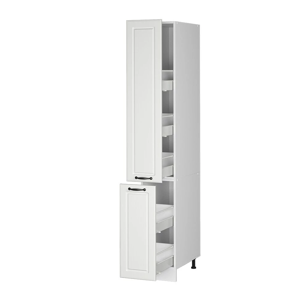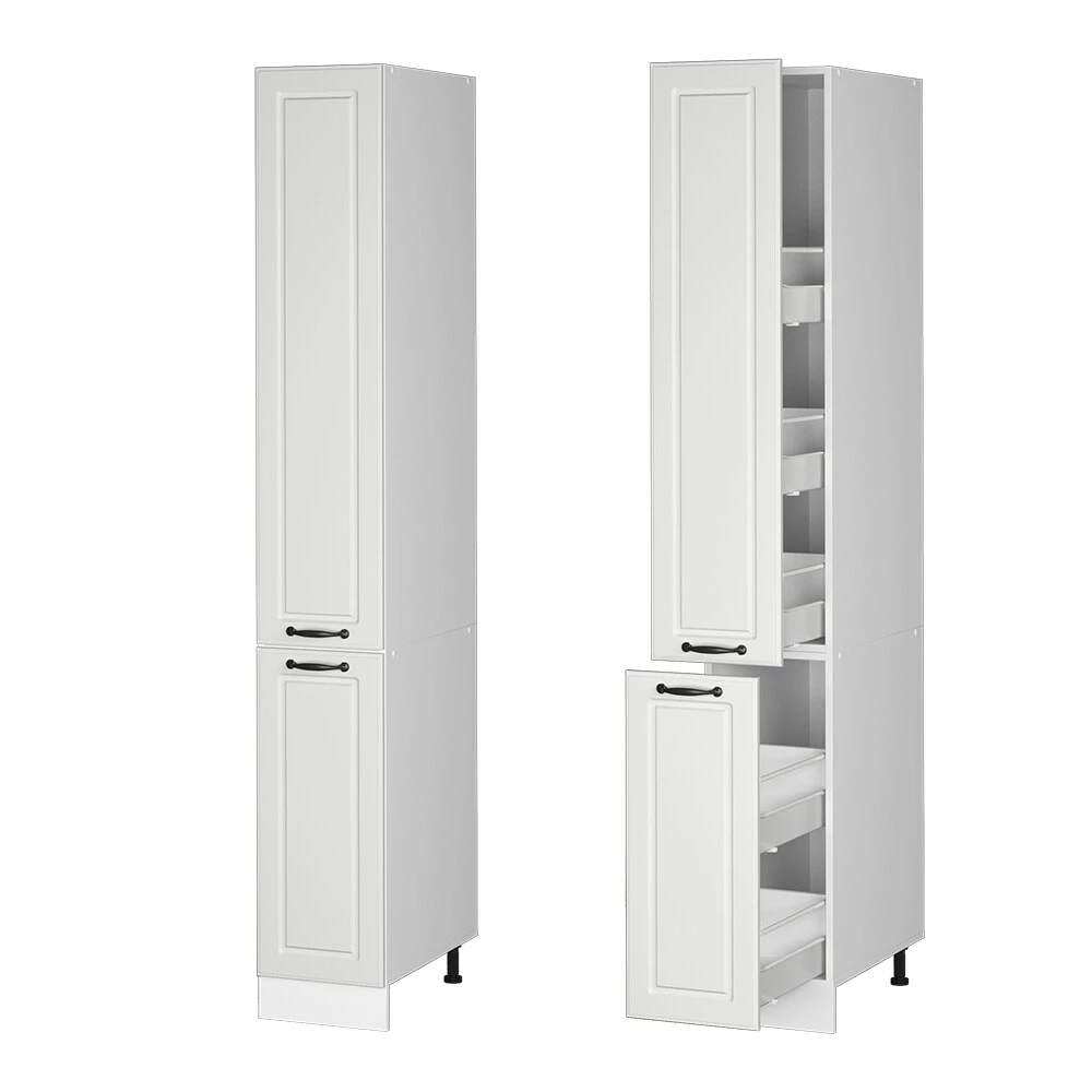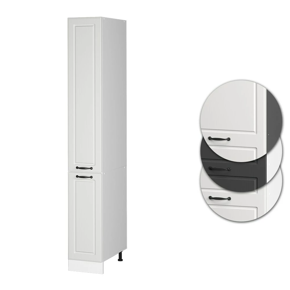 • Die Küchenfront hat ein elegantes Landhaus – Design, bietet viel Stauraum und ist beliebig erweiterbar mit anderen Modulen der Serie „R-Line“.