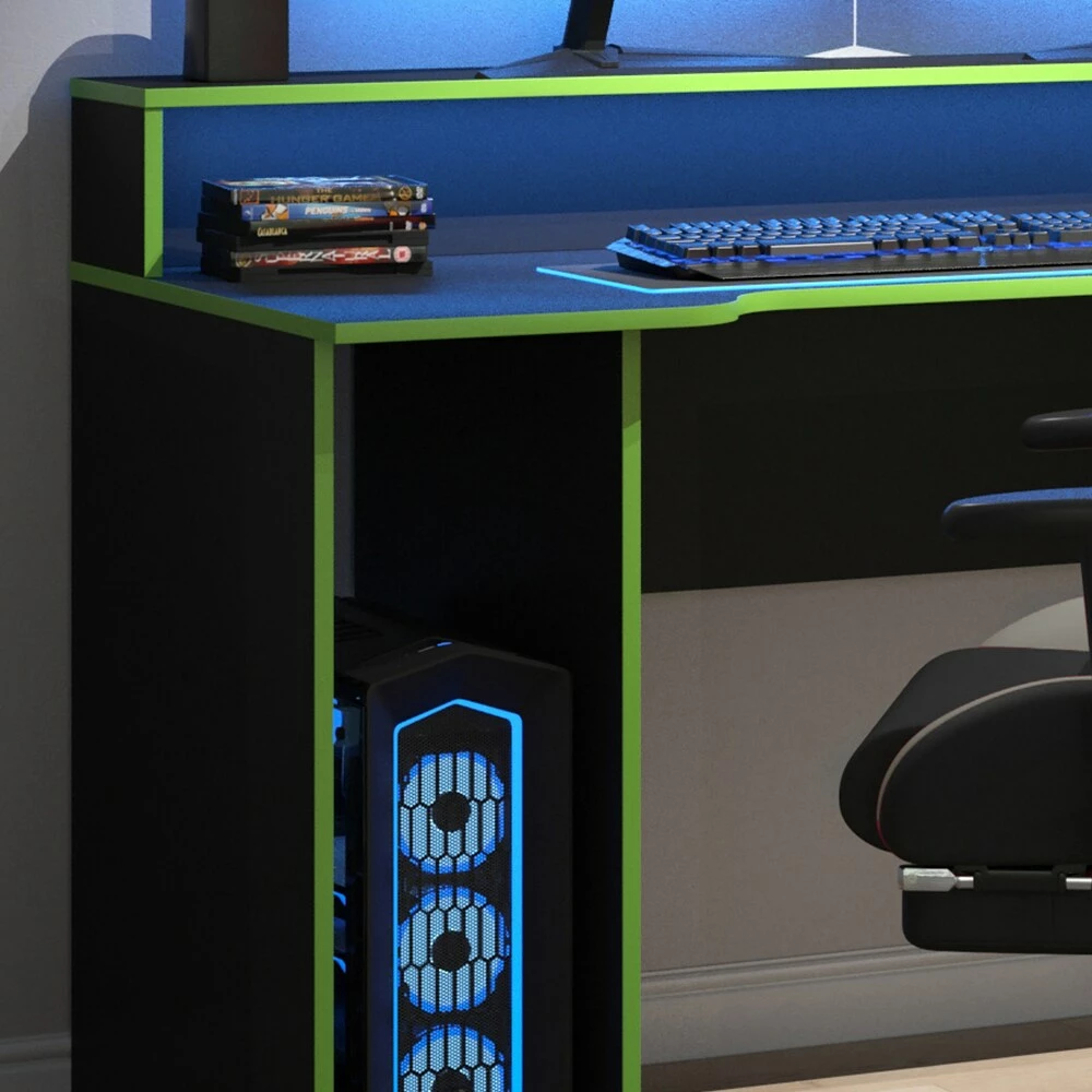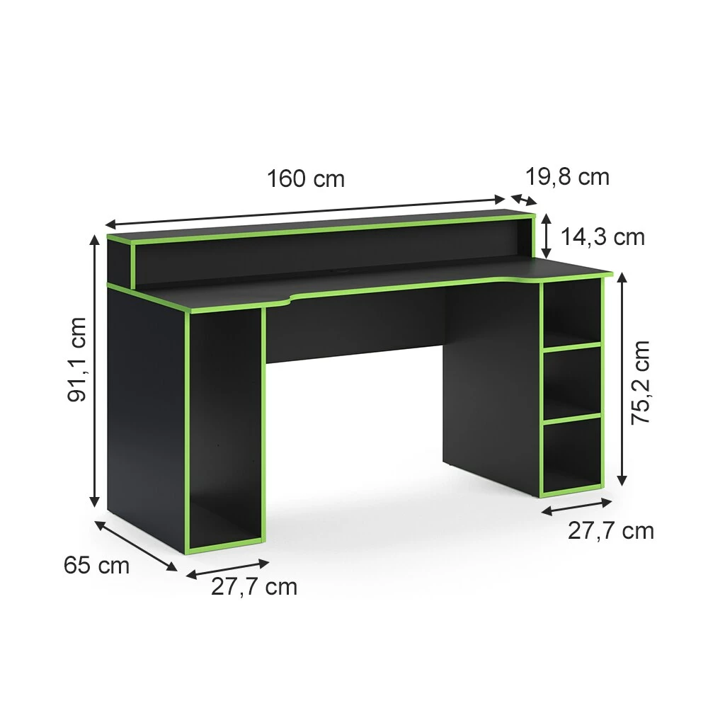 • Die zahlreichen Ablageflächen bieten Ihnen viele Verstaumöglichkeiten und Platz für all Ihr Computer- und Gamingzubehör.