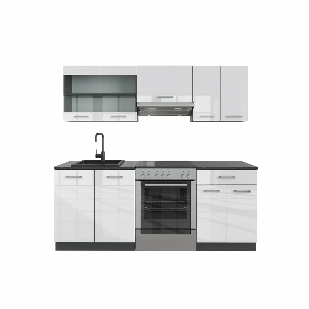 • Im Lieferumfang enthalten sind 5 einzelne Küchenschränke, eine bebilderte und leicht verständliche Montageanleitung sowie die dazugehörigen Montagematerialien.