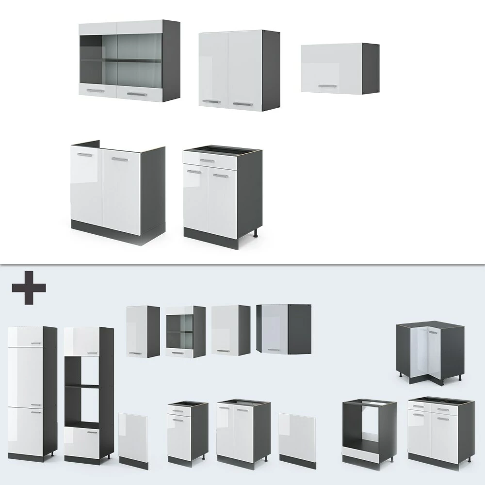 • Die Küche verschafft viel Stauraum durch die geräumigen Schränke und ist noch beliebig erweiterbar mit anderen Modulen der Serie R-Line in unserem Shop.