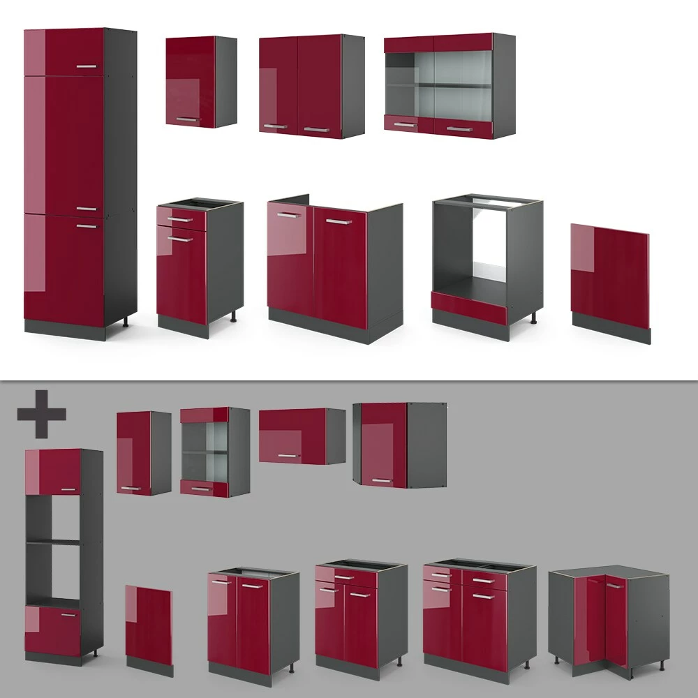 • Im Lieferumfang enthalten sind 8 einzelne Küchenschränke, eine bebilderte und leicht verständliche Montageanleitung sowie die dazugehörigen Montagematerialien.