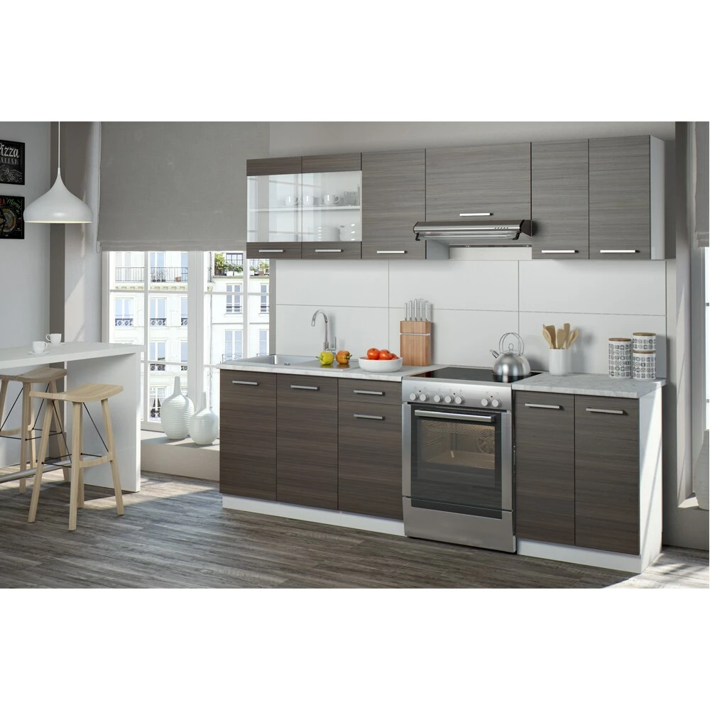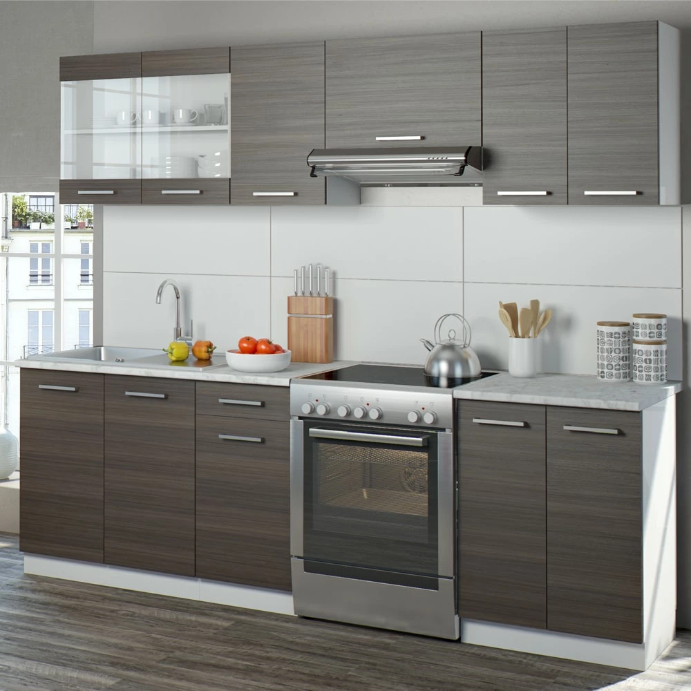 Unsere kompakte, aus mehreren Modulen bestehende Küchenzeile Raul vereinigt Funktionalität und Design in Perfektion. In den Schränken bietet der Küchenblock reichlich Stauraum für alle Küchenutensilien und ist harmonisch aufeinander abgestimmt. Das ansprechende Design mit den erstklassigen Fronten rundet das Gesamtbild ab.