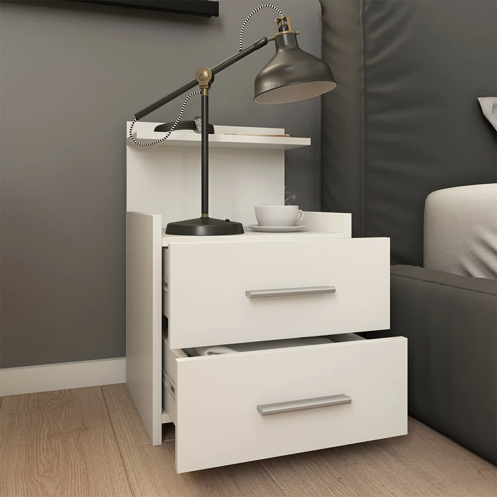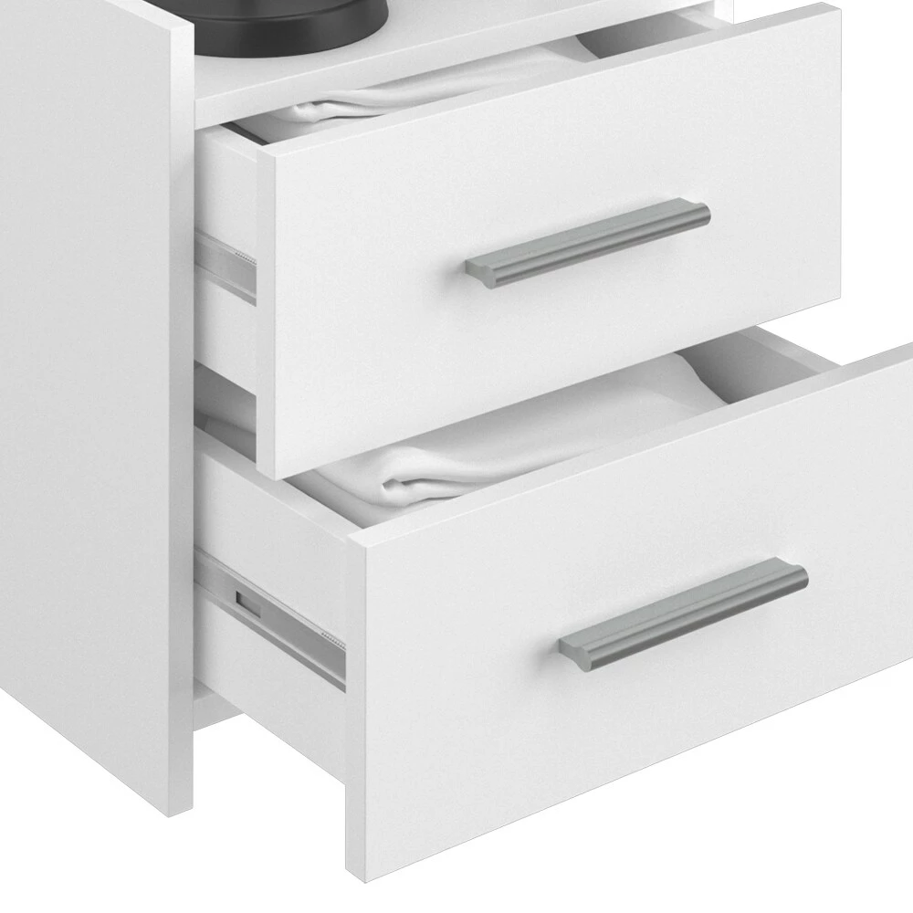 Durch sein kompaktes Format benötigt er nicht viel Platz, bietet aber durch das Ablagefach und die Schubladen ausreichend Platz für Ihre Besitztümer. Das schlichte, modere Dekor lässt sich gut mit anderen Designs kombinieren und gliedert sich somit optimal in Ihren Wohnstil ein.