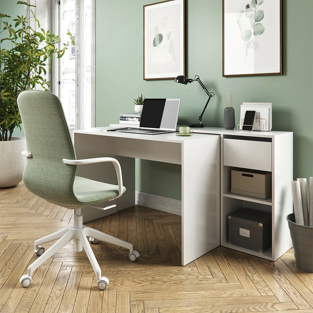 Klare Linien, eine optimale Funktionalität und ein kompaktes Design machen diesen Schreibtisch zu einem Eyecatcher.