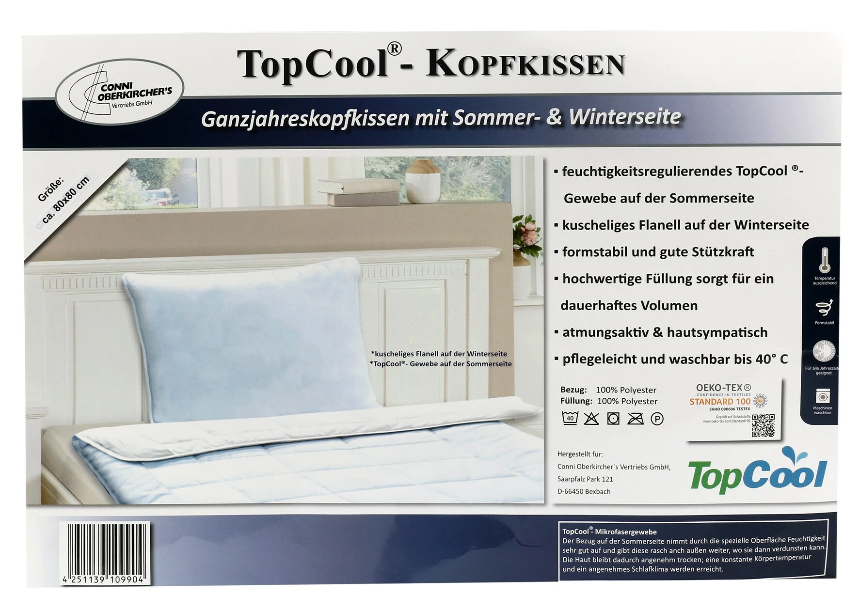 - feuchtigkeits regulierendes TopCool Gewebe auf der Sommerseite