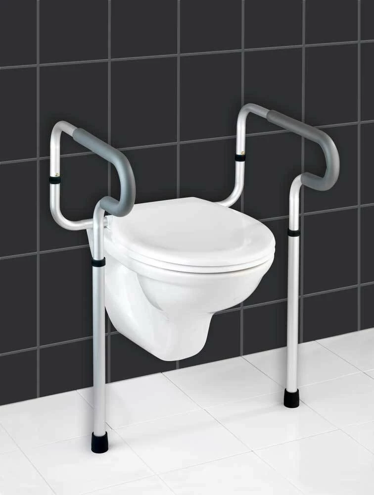 Die WC-Stützhilfe »Secura« eignet sich für alle, die etwas Unterstützung beim Aufstehen und Hinsetzen benötigen. Ausgestattet mit rutschfesten Gummifüßen, bietet die praktische Stützhilfe sicheren Halt und Komfort beim Gang auf die Toilette. Die 5-fach höhenverstellbare Stützhilfe lässt sich Ihren Bedürfnissen flexibel anpassen. Die Stützhilfe für mehr Selbstständigkeit Die WC-Stützhilfe »Secura« vereint zwei Vorteile: zum einen bietet sie Ihnen sicheren Halt beim Hinsetzen und Aufstehen von der Toilette, zum anderen nimmt sie dafür nicht viel Platz im Bad ein. Die höhenverstellbare Aufstehhilfe ist unkompliziert zwischen WC-Deckel und WC-Keramik zu montieren und sorgt für rutschfeste Unterstützung, mit der Sie selbstständig bleiben können. Die Qualitätsmerkmale der WC-Sitzhilfe »Secura« im Überblick: Einfache Montage Stabil gefertigt aus Aluminium Mit rutschfesten Gummifüßen 5-fach höhenverstellbar Maße: B 55,5 cm x H 71-81,5 cm x T 48 cm