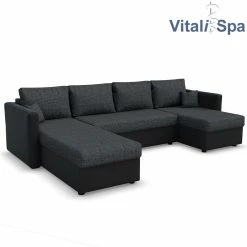VICCO XXL Ecksofa Mit Schlaffunktion Schwarz – Couch Ecksofa Schlafsofa Taschenfederkern Polstereck